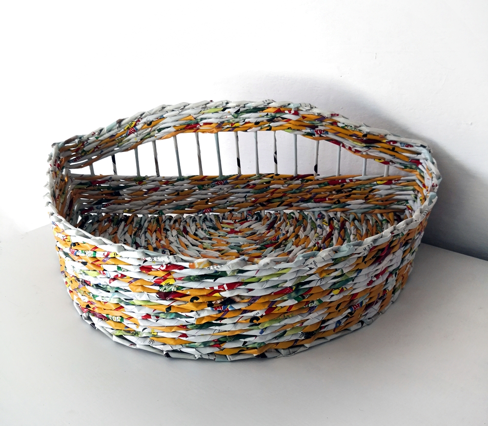 Co tam u mnie? Powoli się plecie :) Tym razem powstał kosz z półokrągłym dnem w energetycznych kolorach.
